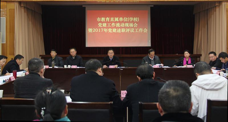 12月25日,市教育局党委组织召开了市教育直属中小学党建工作流动现场会暨2017年直属党组织书记述职评议工作会议。局党委书记、局长张夕谦出席会议并讲话。